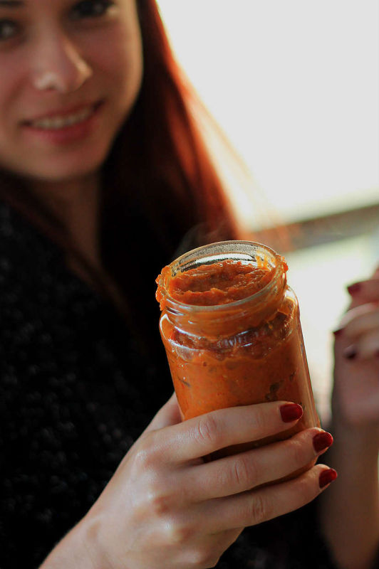 La întoarcere, zacusca era gata. Adriana Eftimie, mezina familiei, o punea în borcane deja. Tanti Nuți, pregătea gogoșarii lăsați la murat cu o seară înainte.