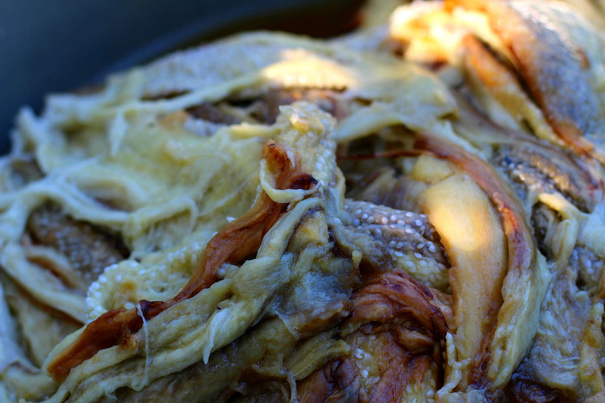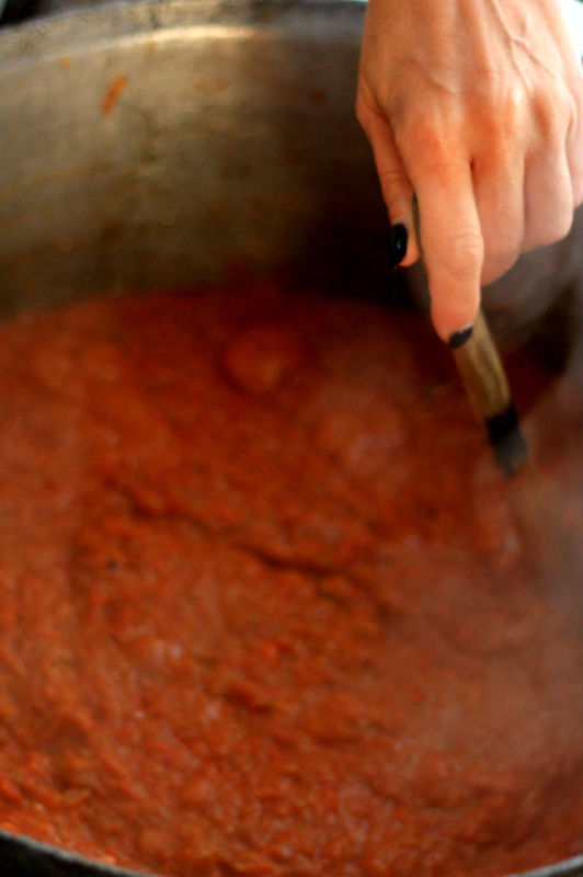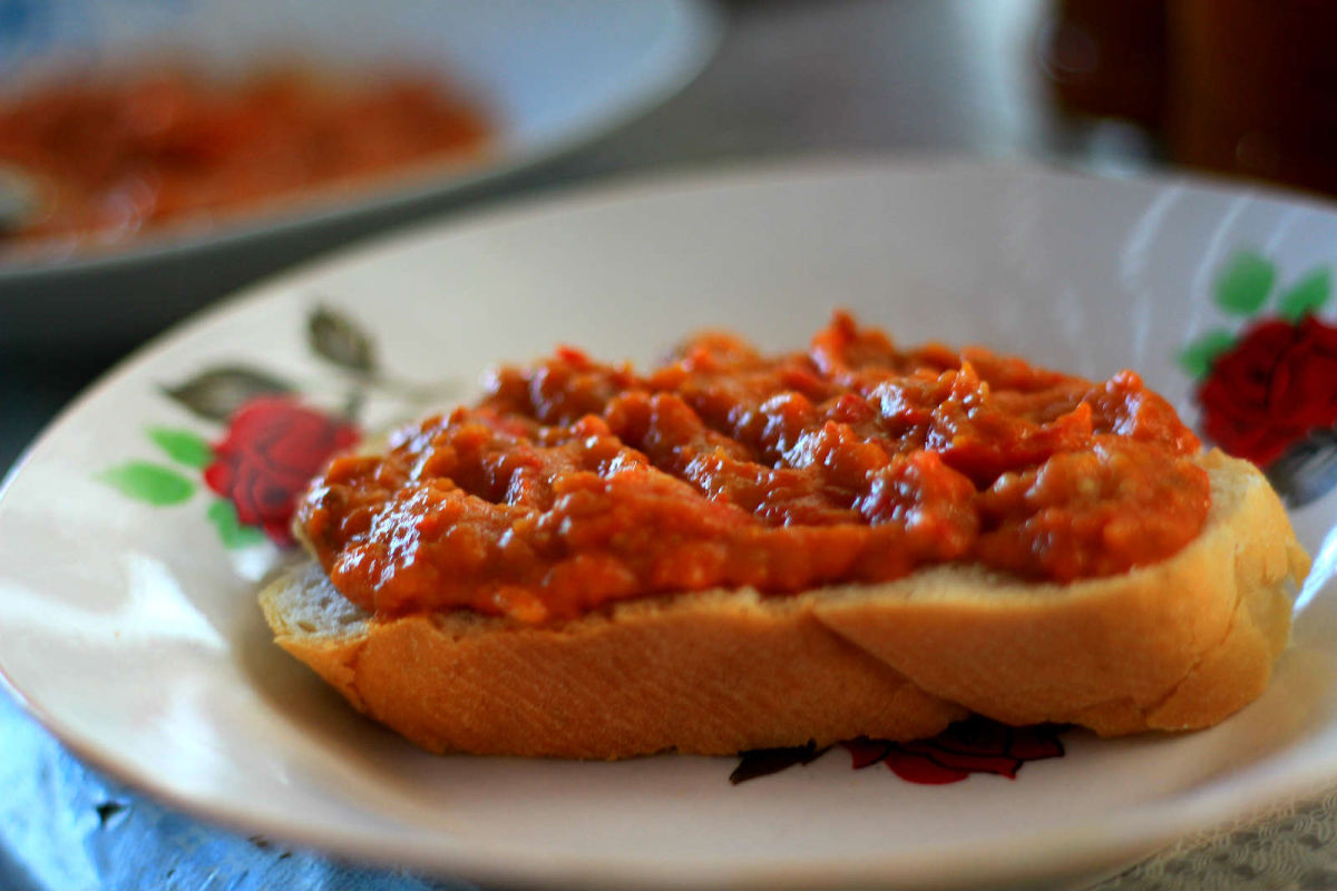 De la dl Eftimie am aflat care este ingredientul secret al zacuștei gustoase: răbdarea. De la coptul ardeilor, roșiilor și al vinetelor la tablă, la foc de lemne, și până la mestecatul prin ceaun cât se poate de des…Din când în când am încercat-o. Iată dovada: