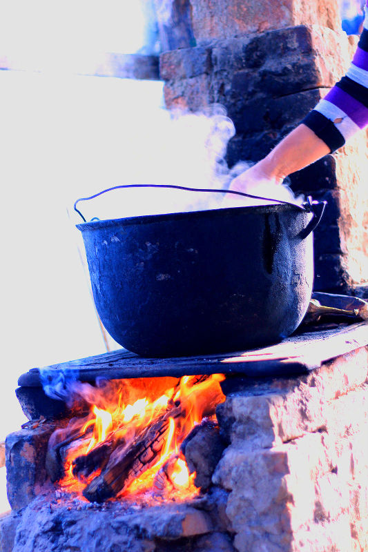 Multumiți de bănuții încasați toamna aceasta, giurgiuvenii s-au apucat să pregătească ce e de pregătit pentru iarnă: suc de roșii, murături și, în mod special, zacuscă. Majoritatea făcute la ceaun, pe soba cu lemne, afară, în șopronul casei. Cele două ore și ceva de copt legume, de mestecat în ceaun și băgat lemne în foc au avut un farmec aparte. Chiar dacă am ajuns acasă cu hainele mirosind puternic a fum, pot spune că ce a ieșit din mâna lui tanti Nuți, v-ar face să înghițiți în sec minute în șir.