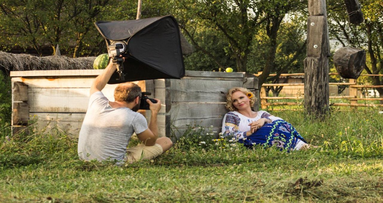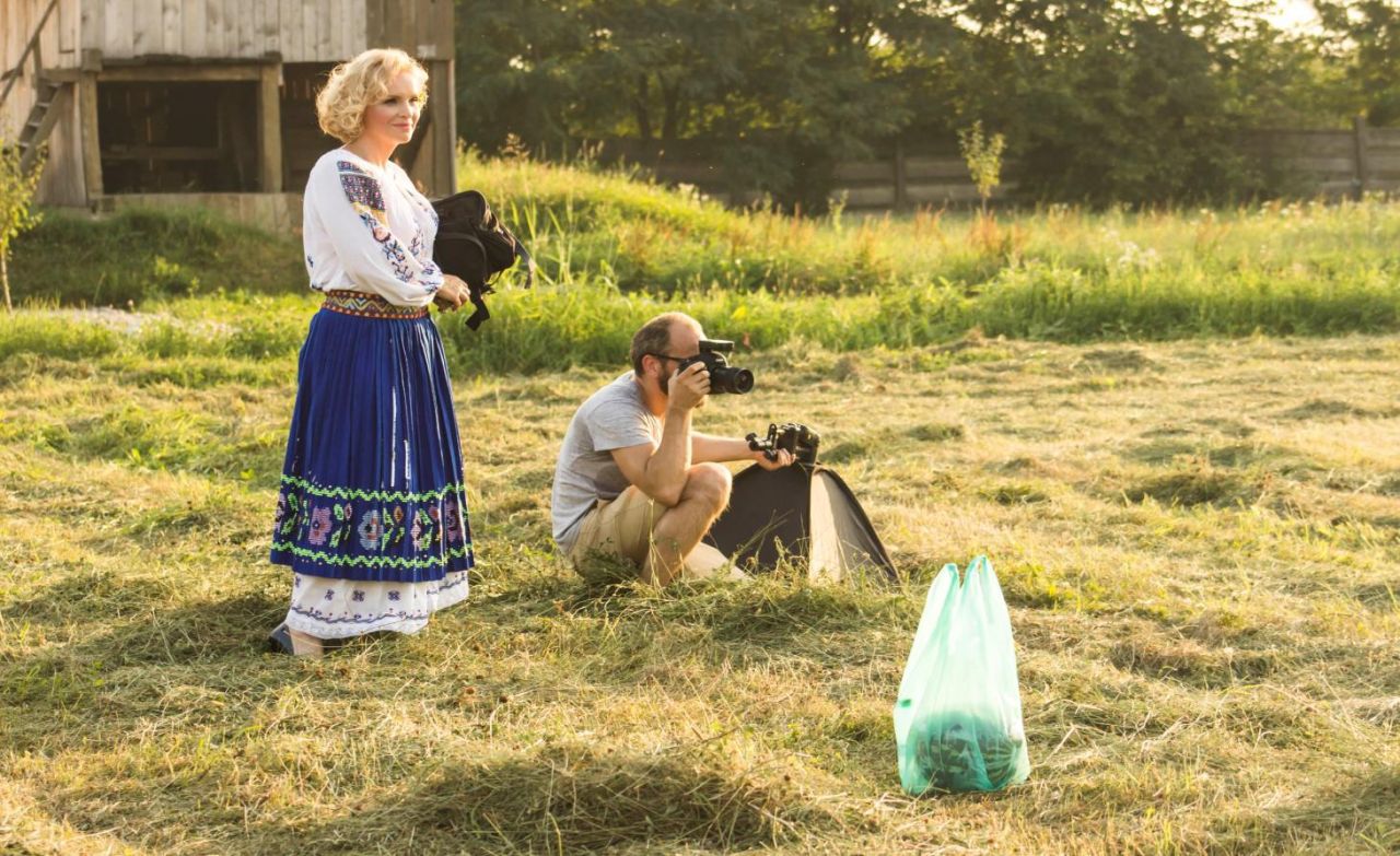 Ședință foto așa: pe tocuri de 10 cm prin tarla, apoi la picioare goale, totul pe 40 de grade Celsius