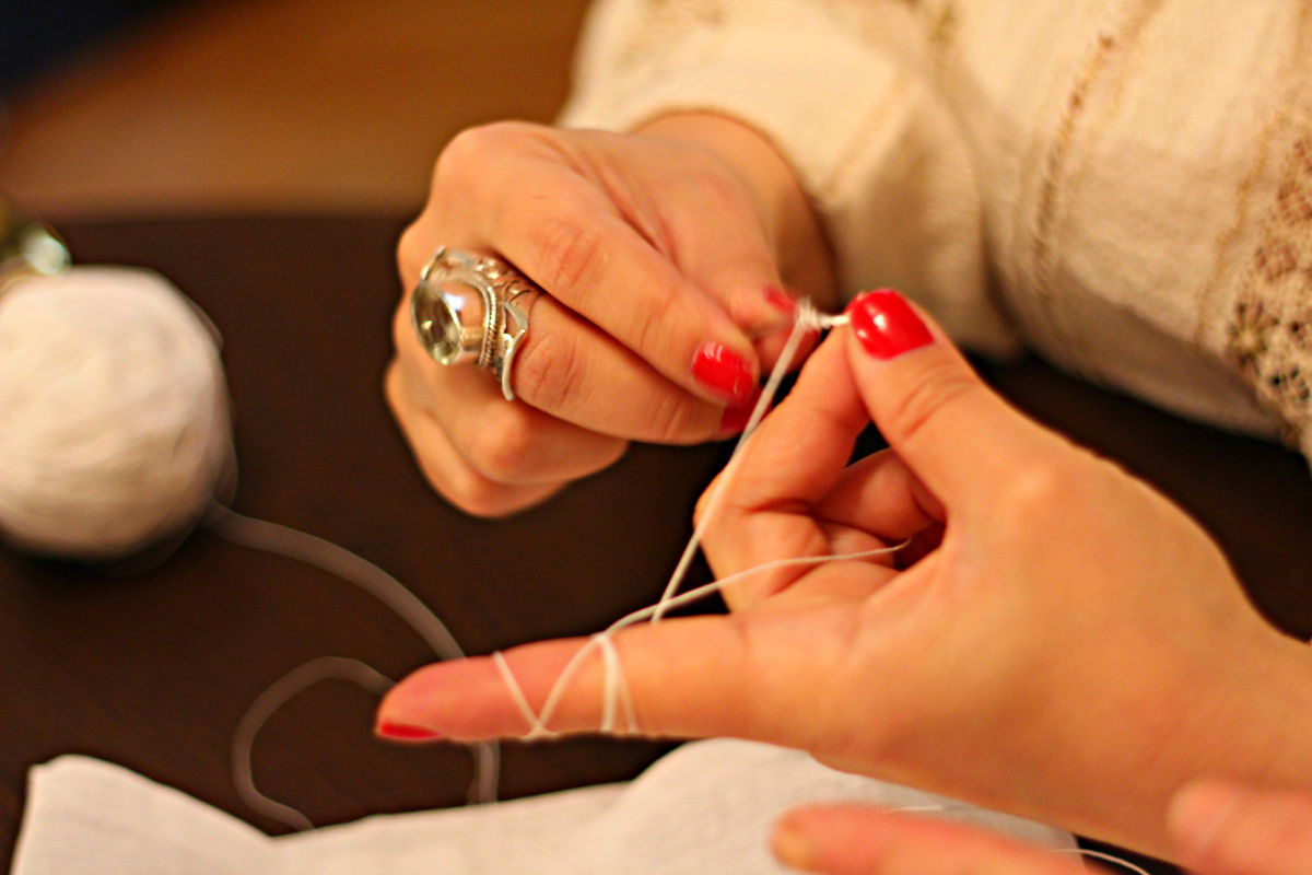 Da, provocatoare misiune asumată de Ozana Barabancea! Cusătura prinde un pic contur, dar mai e ceva până să ne dăm seama cum va arăta ia. Între timp, am invitat-o să-și reamintescă partea cu croșetatul. Un pic greuț la început, dar după câteva minute mâinile Ozanei intră pe pilot automat.