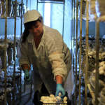 În ciupercăria lui Laurențiu Muntenu se lucrează cu mănuși. Tocmai pentru ca ciuperca este foarte sensibilă. De exemplu, ușor zgâriată din greșeală se înnegrește. Explicația este că substanțele de la suprafață oxideză imediat în contact cu aerul. La cea care vine din import lamelele deja nu mai sunt roz. Ele ajung maron închis la raft.