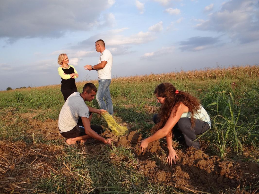 De câțiva ani, Antonio Colceriu a revenit în țară. A luat un hectar de pământ în arendă în Giurgiu și s-a apucat de ce știa mai bine. Cu 3,50-4,00 euro cumpără kilogramul de sămânță din Germania. La cheltuieli se mai adaugă îngrășământul natural care provine de la păsări, tratamentele și lucrările de peste an pe cultură. De stropit, spune el și soția, au stropit cu macerat de urzică. Împotriva gândacului de Colorado, devastator pentru cartof, au folosit insecticid, singurul tratament chimic aplicat. De la anul, cei doi caută soluții din zona bio pentru combaterea acestui dăunător. În rest, au lăsat plantele să se dezvolte în voie.